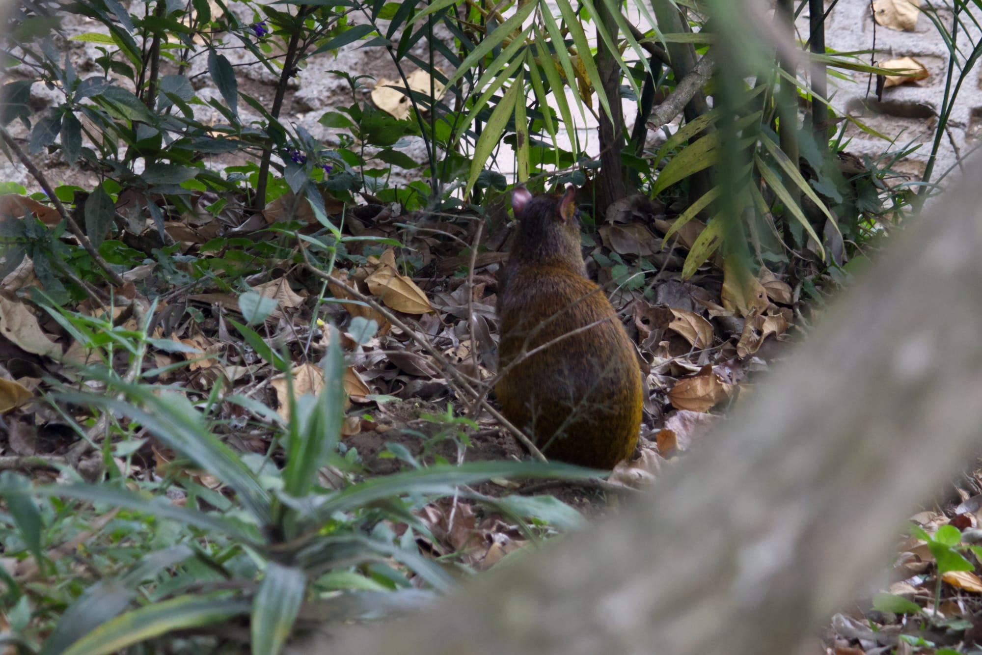 An Agouti refuses to look at the camera. But look at those little ears!A Coati looks for its next meal in the trash bin