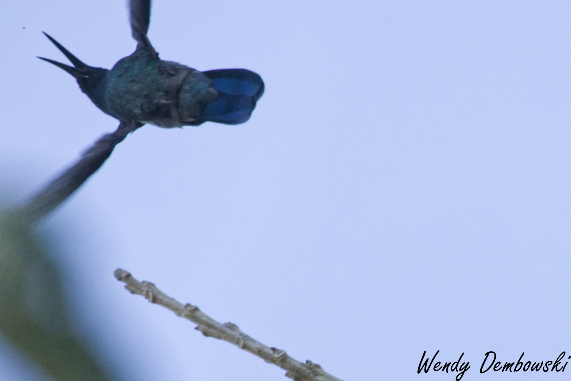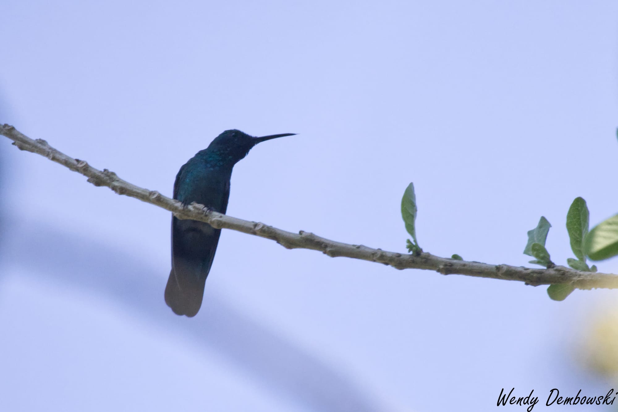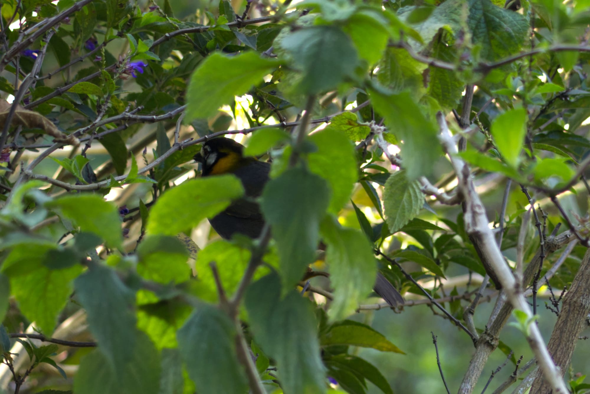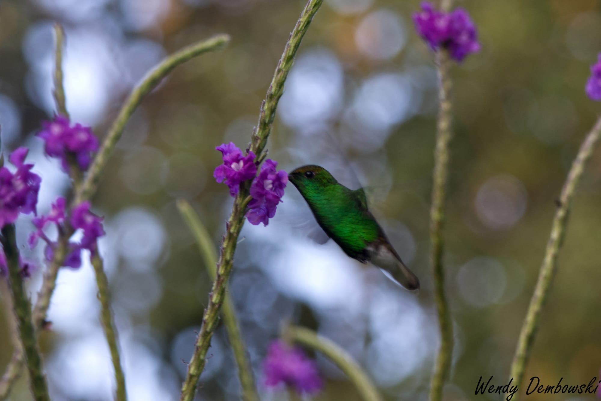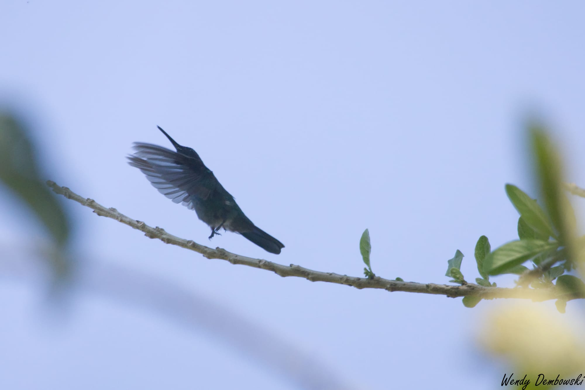 There was a tree amongst these bushes with the purple flowers that the hummingbirds loved. Occasionally they would stop to rest on the tree branches. I stayed with one hummingbird during this resting time. The following is a tiny Violetear Hummingbird story in 5 photos.