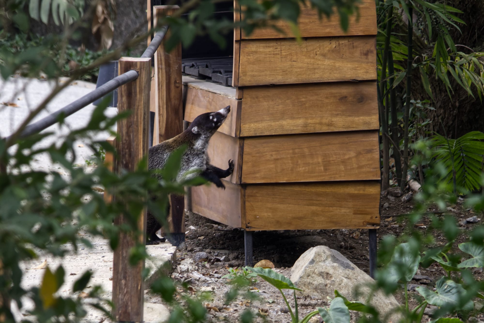 After we finished the nature trail, we made our way back to the hotel restaurant for lunch. On the way we saw an Agouti and a Coati trying to raid the trash. Coati are related to racoons, and they evidently live up to the "trash panda" moniker!